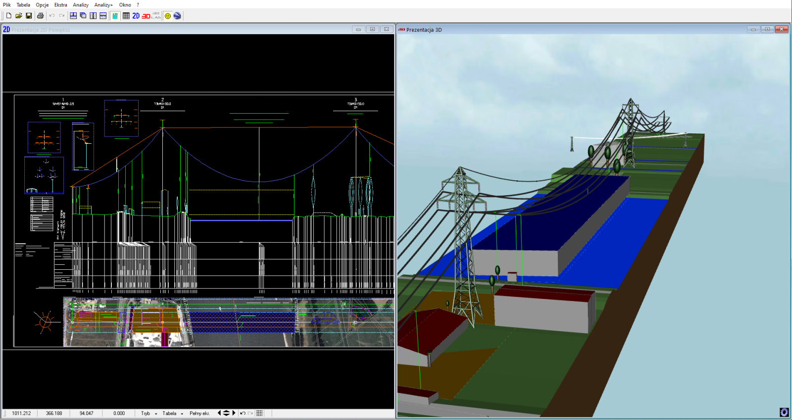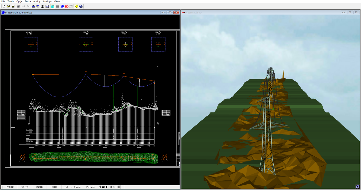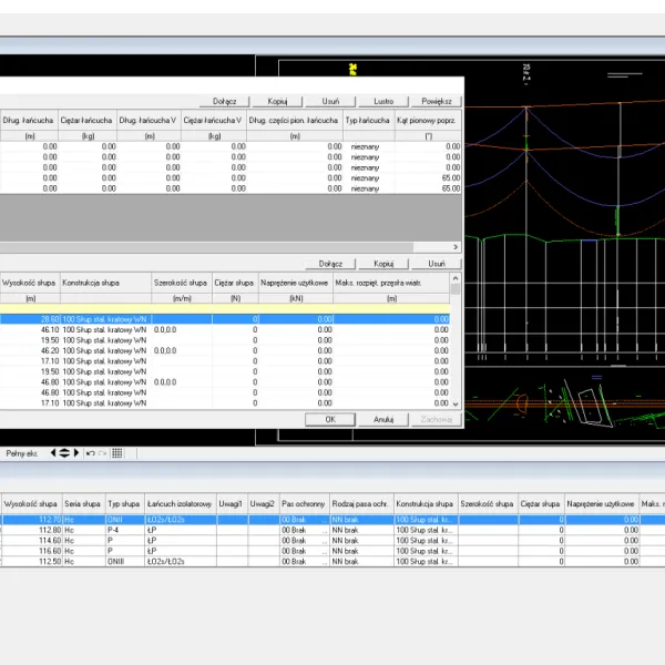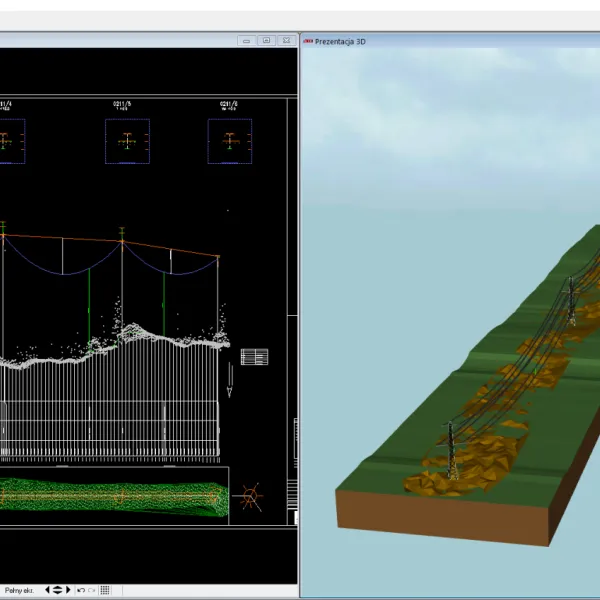 - Tworzenie profili podłużnych linii napowietrznych i kablowych